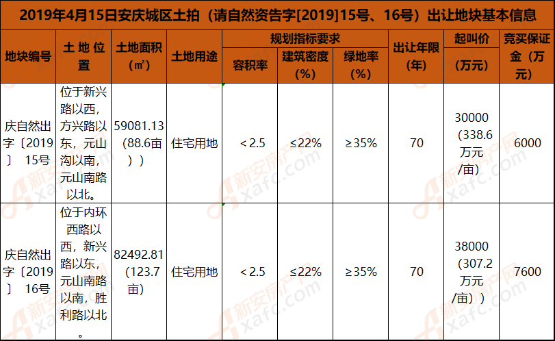4月23日,安慶皖江高科技投資發(fā)展有限公司以總價(jià)7.9億元摘得慶自然出字〔2019〕15、16號(hào)地塊,2宗地塊為居住用地,共計(jì)約212.3畝。