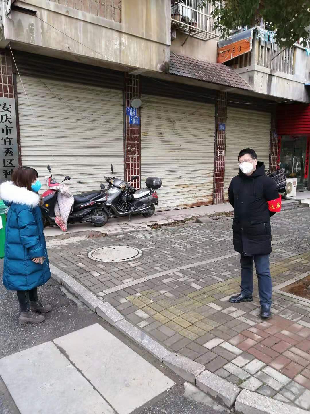 公司副總經(jīng)理朱春平在社區(qū)排查登記,宣傳防疫知識(shí)