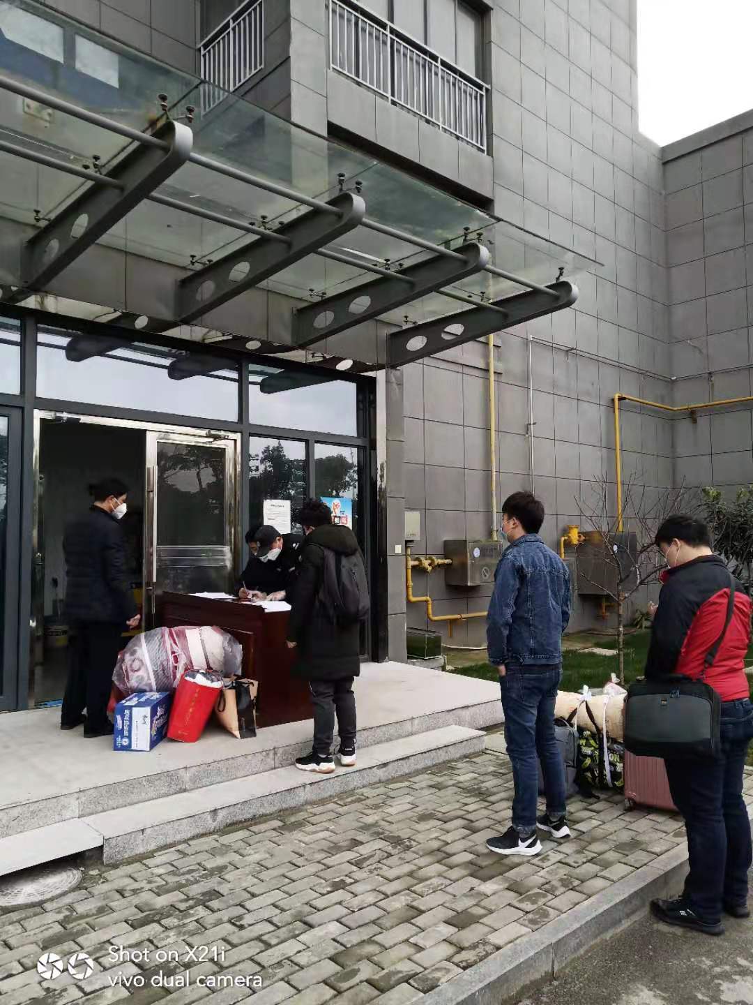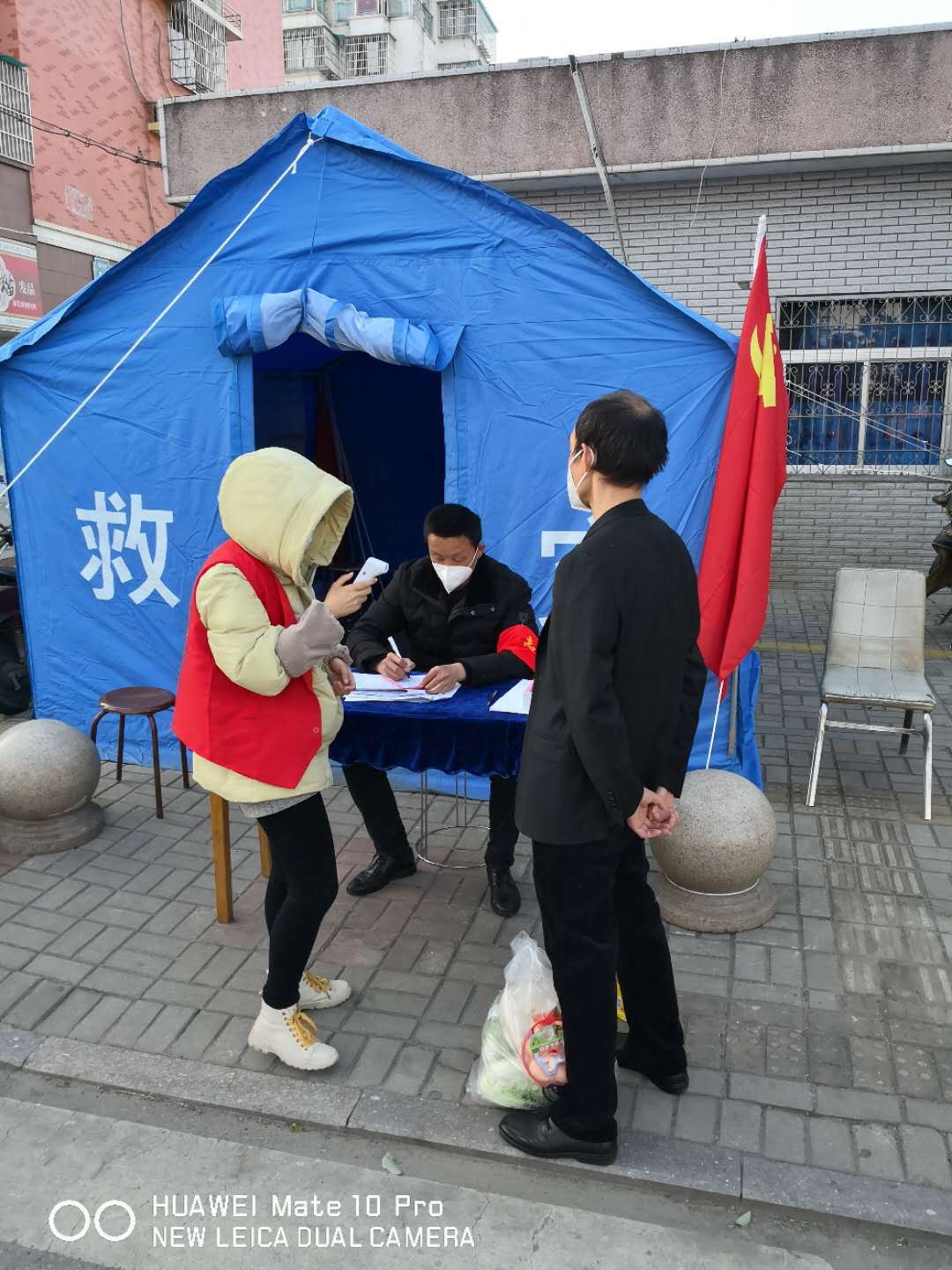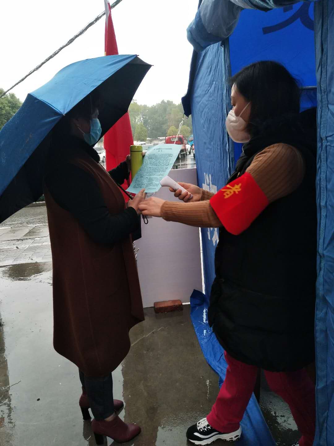 下沉社區(qū)的公司員工們給居民發(fā)出入證做登記,宣傳疫情知識(shí),量體溫等